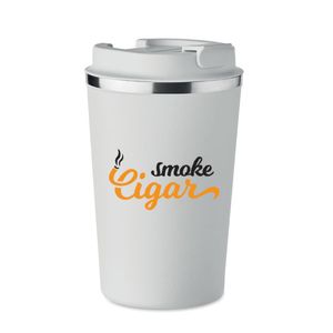 Take away mugg med dbbel vägg i rostfritt stål och PP lock.