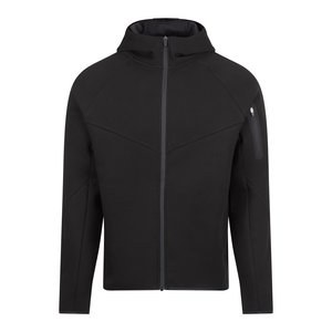 Tillverkad av mjukt interlocktyg med ergonomiska paneler, designad för enkel rörelse. Täckt ficka på ärmen. Jerseyfodrad huva.