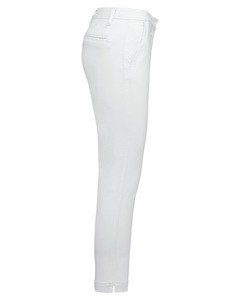 2 back pockets with piping and reinforced seams, only decorative one on white.