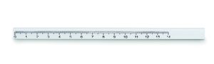 Snickar penna i trä med 14 cm linjal förtryckt på pennan.